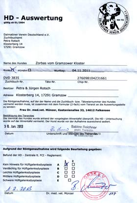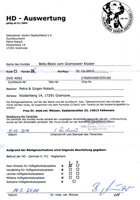 30.07.2009 - die Urkunde ist gekommen ! Totti vom Gramzower Kloster