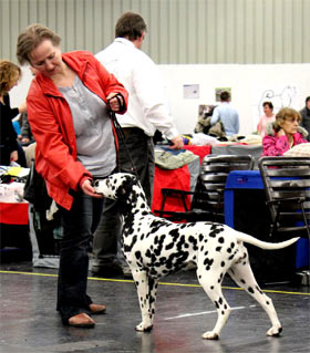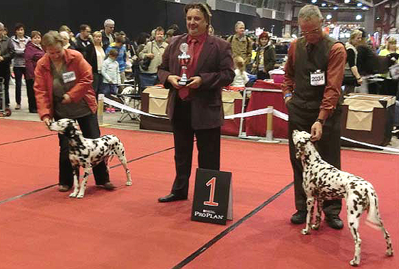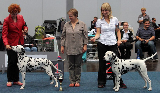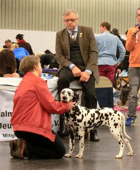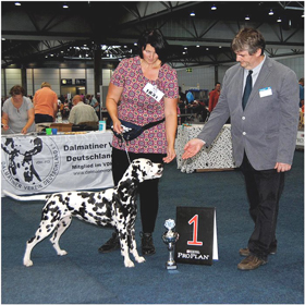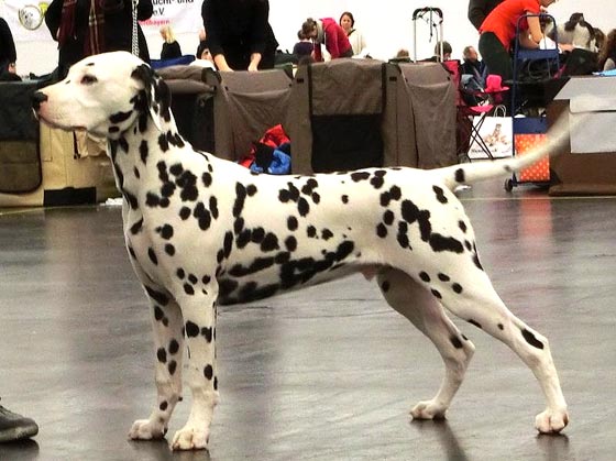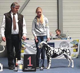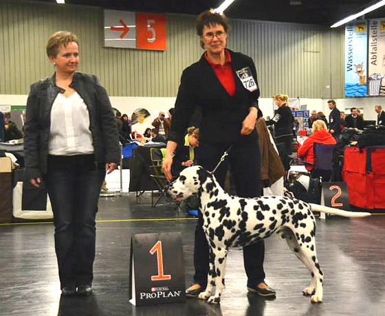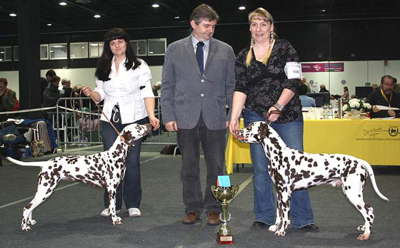 An den beiden Folgetagen fanden die CACIB – Show und die WAFDAL – Show auf dem Messegelände in Salzbug statt. Ein schönes und stressfreies Gelände für Hunde und Aussteller. Unsere Hunde liefen an beiden Tagen in die Platzierung. Am Samstag (CACIB) waren 56 Dalmatiner gemeldet – Union Jack bekam V4 und Ultima V3 - jeweils in der Offenen Klase. Anlässlich der WAFDAL – Show gingen dann 79 Dalmatiner an den Start. Ultima konnte den zweiten Platz erreichen, genauso wie Union Jack, der in einer Konkurrenz von 14 Rüden hinter dem zweimaligen Tagessieger „Jilloc´s Sugar Daddy“ platziert wurde.