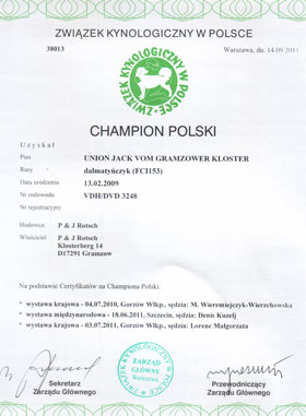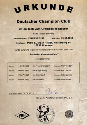 Union Jack ist Champion 23.09.2011 - die Urkunde ist gekommen ! |