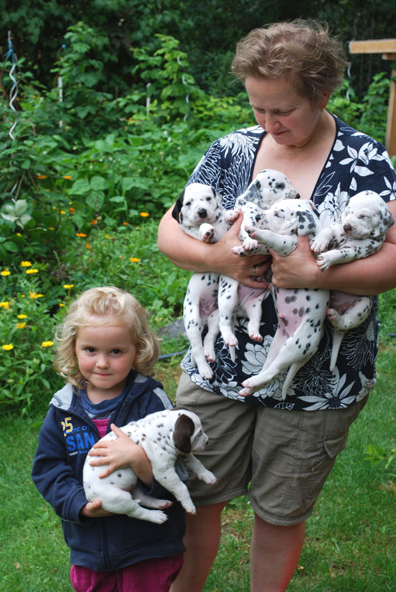 Kari ist von unseren Kindern ganz selbstverständlich „adoptiert“ worden und auch für uns ist sie heute ein wichtiger Teil unseres Lebens. Unsere Stunde Null in der Dalmatinerzucht begann, als Kari uns Perditas Keen Observer anvertraute – einen Hund wie man ihn nur einmal im Leben trifft. Aber wir bekamen nicht nur einen tollen Deckrüden sondern Kari ließ uns auch an ihrer Philosophie der Hundezucht teilhaben. Das Meiste was wir heute zu wissen glauben durften wir von Kari lernen und auch wenn wir nicht täglich telefonieren – sind wir nie wirklich weit voneinander entfernt. |