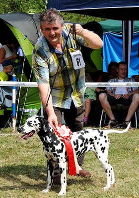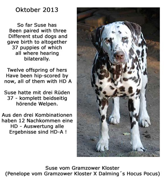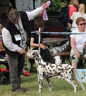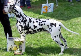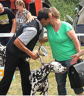 Was für ein Hund...Wir sind sehr kritisch wenn es um die Hunde geht, aber wir kennen keinen Dalmatiner in Europa der "Hocus" das Wasser reichen könnte. Der Vater von Totti, Suse und LüLü sowie Großvater von Ultima und Union Jack... ist eine Ausnahmeerscheinung in der heutigen Dalmatinerwelt - Trine, wir gratulieren Dir ! |