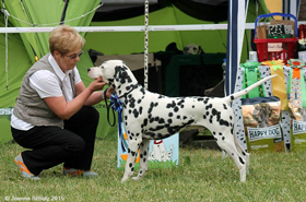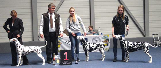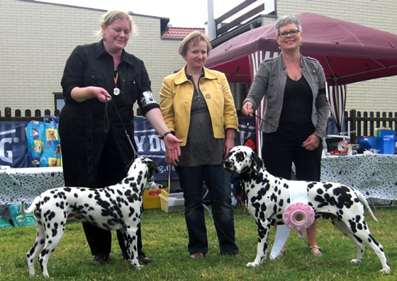 verschiedenfarbiges Band vergeben und… raus! Ganz anders die vom Dänischen Dalmatiner Klub organisierten zwei Ausstellungen an den Folgetagen. Ähnliche Meldezahlen wie am Freitag und dennoch wurde von den Gastgebern mit einer angenehmen Ruhe, viel Liebe und Engagement ein Wochenende organisiert, welches in Europa seines Gleichen sucht! Unsere Ultima bekam "vorzüglich" auf der World Dog Show und hat am Samstag den 2. Platz und am Sonntag den 4. Platz in der Mittelklasse belegt!
