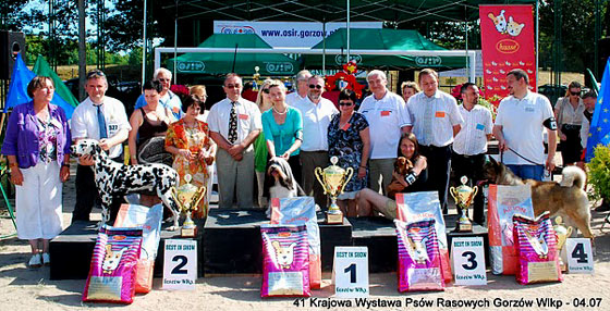 Schönste Hündin "Somora's Earth Song" und BOB "Bodyguard von Helmuni" | |