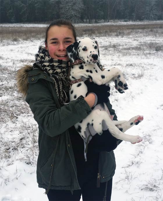 Hallo Familie Rotsch, jetzt ist Instant Isaac, wie wir ihn genannt haben - Jasper, schon fast 3 Monate bei uns und für uns ist er der tollste Dalmatiner der Welt! Wir sind sehr glücklich mit ihm. In der Hundeschule macht er sich auch schon super. Liebe Grüße |
