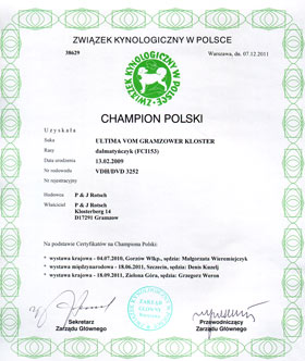 Ultima ist Champion 13.12.2011 - die Urkunde ist gekommen ! |