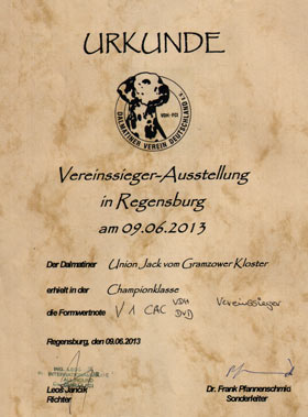 07.05.2014 - Urkunde für Union Jack ! | |